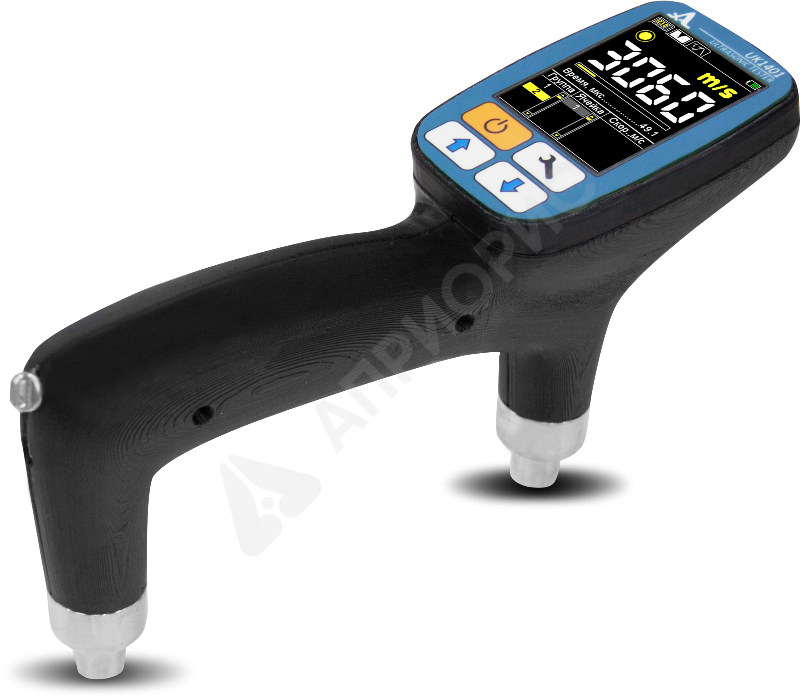 Ультразвуковой тестер UK1401 предназначен для измерений времени и скорости распространения продольных ультразвуковых волн в твёрдых материалах при поверхностном прозвучивании на фиксированной базе с целью определения прочности и целостности материалов и конструкций. Оценка прочности основана на корреляции скорости распространения ультразвуковых волн в материале с его физико-механическими характеристиками и физическим состоянием.
