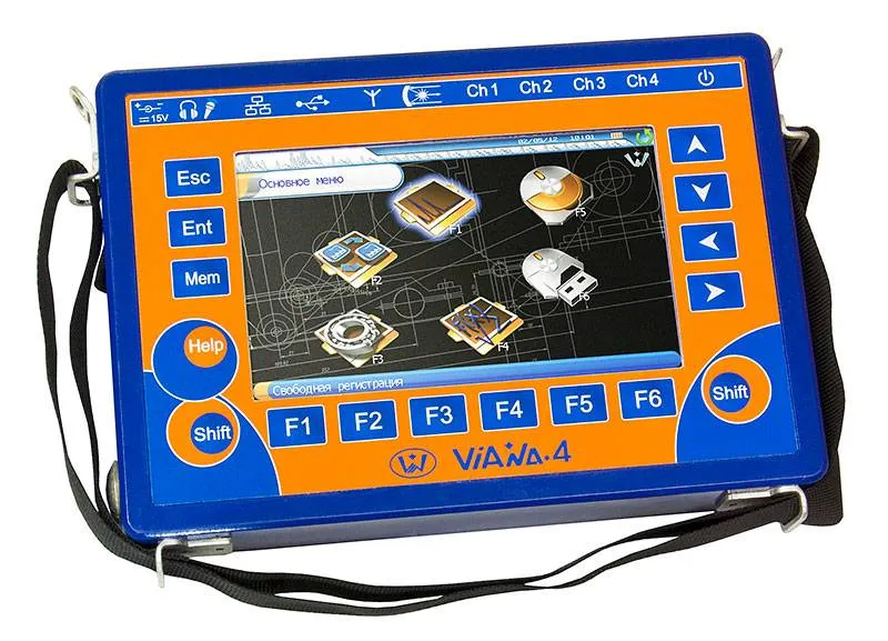 Универсальный переносной прибор марки «ViAna-4» (Vibro Analyzer, 4 независимых канала) является самым технически и функционально эффективным регистратором и анализатором вибрационных сигналов в серии приборов, производимых компанией «Вибро-Центр». По своим техническим и функциональным возможностям он ни в чем не уступает приборам, выпускаемым мировыми лидерами в производстве средств вибрационного контроля.