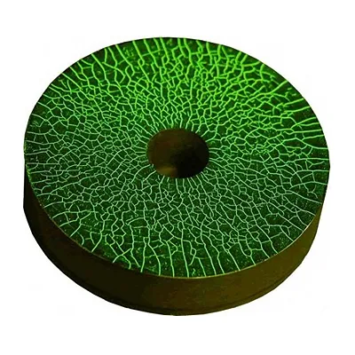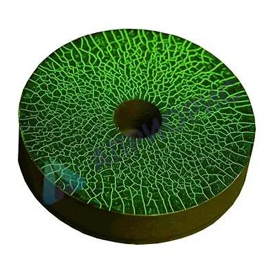 Эталон представляет собой постоянный магнит с двумя видами натуральных трещин. Грубые трещины – результат шлифовки. Мелкие трещины – коррозионное растрескивание. Оценка магнитопорошковых суспензий осуществляется посредством визуального контроля.