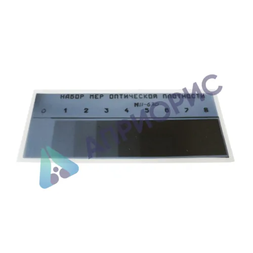 Меры выполнены в виде рентгеновской плёнки, четырёхугольной формы, с различной оптической плотностью. Нижний предел плотности составляет 0,1 Б, а предельное максимальное значение 4,5 Б, с шагом 10.