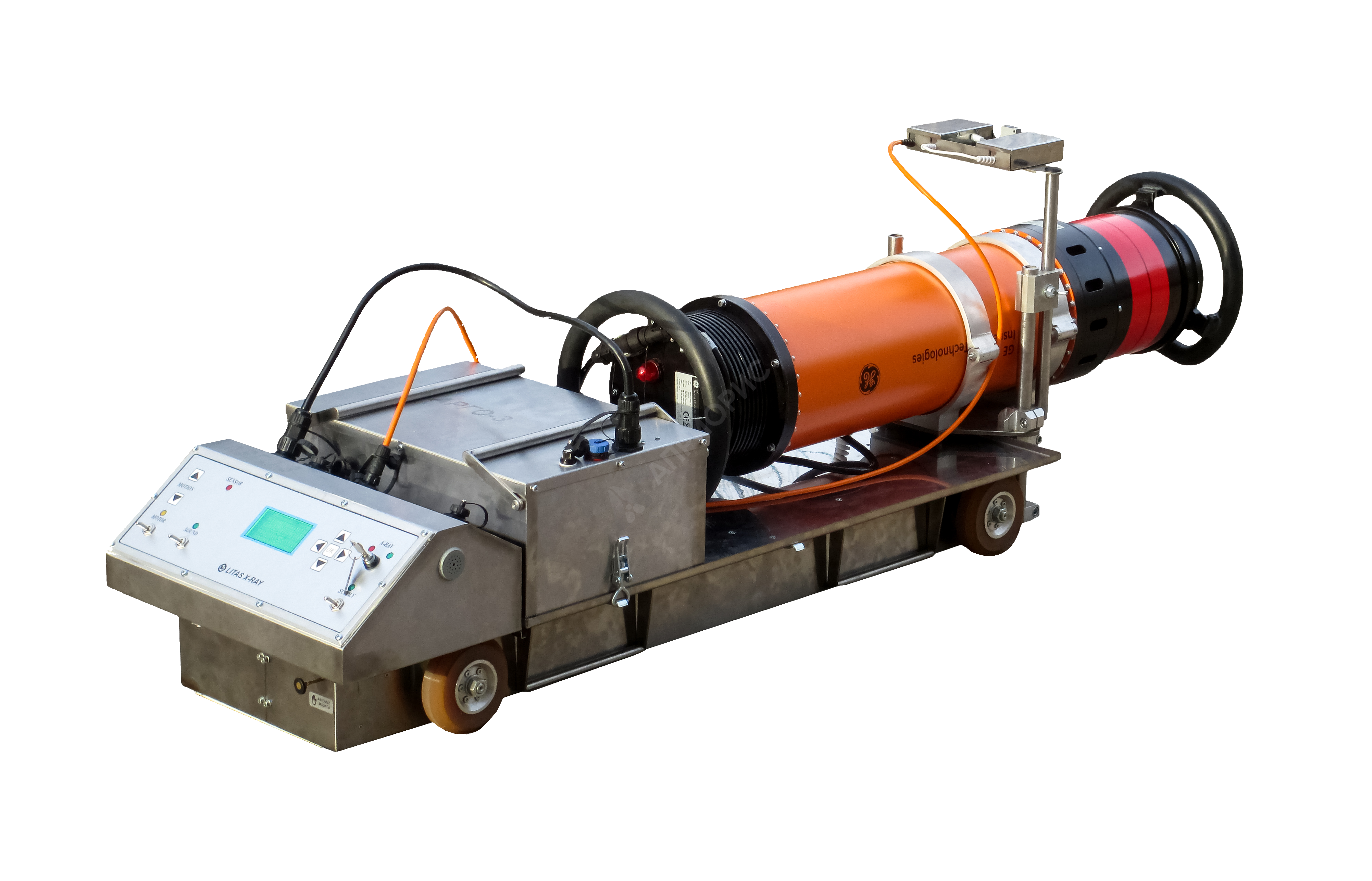 При автоматизированном контроле трубопроводов и контроле качества сварных стыков применяют метод панорамного просвечивания. При использовании такого метода необходим источник рентгеновского излучения, в качестве которого выступает рентгеновский самоходный аппарат – кроулер.