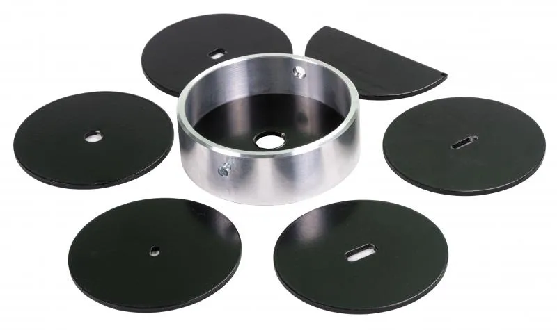 Представленный набор коллиматоров используется совместно с рентгеновским аппаратом «МАРТ-200» и обеспечивает разные значения угла раскрытия. На рисунке приведен список видов коллиматоров, из которых собран предлагаемый набор.