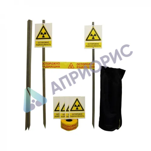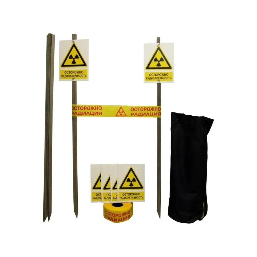 Набор состоит из яркой ленты «Осторожно радиация» и знаков, предостерегающих об угрозах для здоровья. Они необходимы для огораживания мест с вероятной или фактической угрозой негативного влияния ионизирующего излучения на здоровье людей.