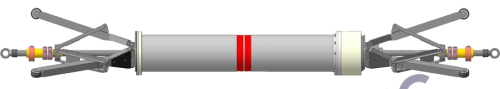 - Передняя часть тележки надевается на передний конец моноблока до упора фланца тележки в передний торец моноблока и фиксируется на моноблоке путем стягивания винтом пластикового хомута тележки. Перед затяжкой хомута разворачивают вокруг продольной оси моноблока переднюю часть тележки таким образом, чтобы в плоскости, проходящей через продольную ось моноблока и любую из трех ног задней части тележки оказалась любая из трех ног передней части тележки. Эту операцию удобно проводить, когда тележка с моноблоком лежит на горизонтальной поверхности