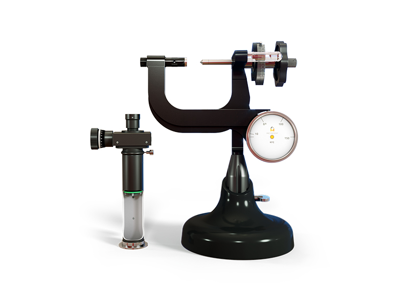 Твердомеры оснащены аналоговым отсчетным устройством контроля нагрузки, струбцинными захватами, инденторами и опорными площадками.
