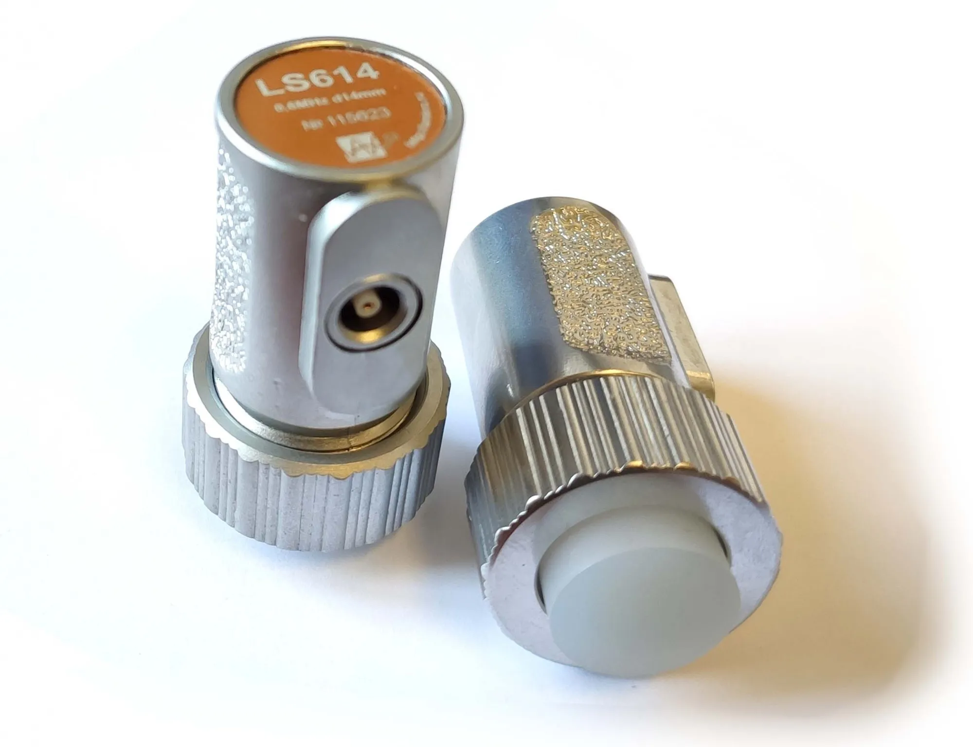 LS614 - ультразвуковой контактный низкочастотный раздельный преобразователь для теневого способа контроля. Выпускается в двух модификациях - со сменным силиконовым протектором либо с металлической защитной поверхностью.