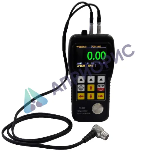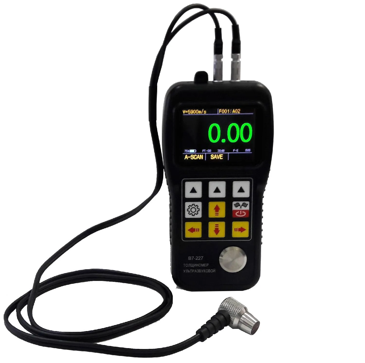 Толщиномеры ультразвуковые В7-227 измеряют толщины металлических и неметаллических изделий в диапазоне от 0,8 до 300 мм (по стали) с 8 различными типами преобразователей для стандартных (от -10 0С) и высокотемпературных (до 350 0С) поверхностей; низкочастотные преобразователи для толстых, сильно ослабляющих или сильно рассеивающих материалов, в т. ч. чугуна; миниатюрные преобразователи для измерения тонкостенных труб или труб с малой кривизной стенки, а также специализированный датчик для измерения через покрытие, в т. ч. коррозию. Работа с режимами А-скан и В-скан. Измерения скорости звука, установка порога допустимого MIN и MAX значений, в т. ч. в режиме В-скан, установка номинальной толщины в пределах диапазона измерений в режиме А-скана, режим коррекции сигнала и его формы, регулировка усиления от 8 до 55 дБ для материалов с большим затуханием сигнала (например литье из алюминия, меди и т.п.), возможность калибровки по 2-м точкам. Память на 100.000 значений толщины и 1.000 диаграмм сигналов A / B-сканирования, диаграммы и значения толщины могут быть сохранены в одном файле.
