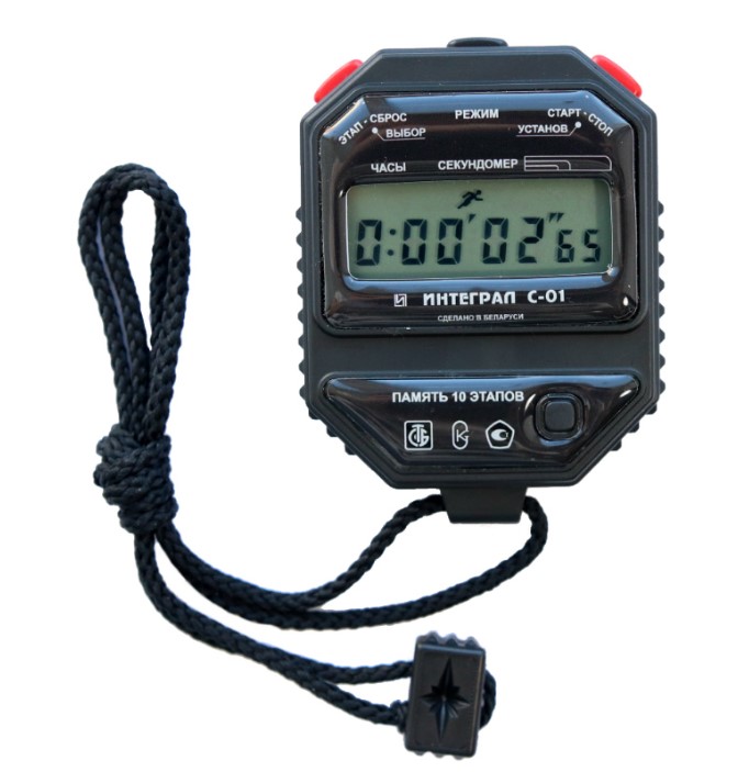 Секундомер Интеграл С-01 - отсчитывает и отображает на дисплее до 10 временных промежутков. Сфера применения достаточно обширна - его можно использовать как для спортивных состязаний, так и для медицинских, образовательных целей, научных опытов и других требующих точного отсчета времени задач.