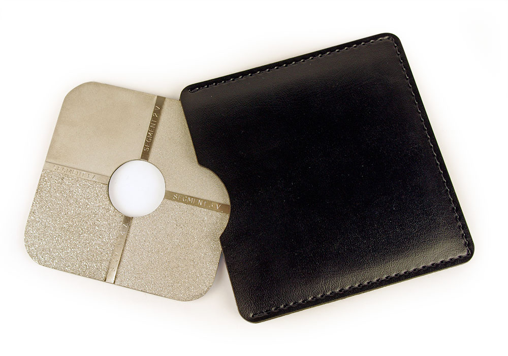 Компаратор шероховатости представляет собой квадратную металлическую пластину с отверстием в центре, разделенную на четыре квадранта с определенной для каждого из них шероховатостью поверхности.