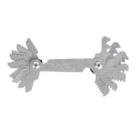 Представляет собой 20 закрепленные в обоймы тонких стальных пластин толщиной 1 мм с точными зубьями резьбы. Шаг резьбы шаблонов: 0.5; 0.6; 0.7; 0.75; 0.8; 1.0; 1.25; 1.5; 1.75; 2.0 мм и 28; 24; 20; 19; 18; 16; 14; 12; 11; 10 ниток на дюйм. Размер 75х15х15 мм.