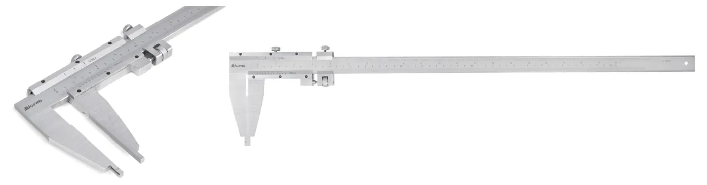 Штангенциркули нониусные односторонние, без глубиномера ШЦ (тип 3) – это гиганты, оснащенные устройством тонкой подачи и двойной шкалой. Длина губок варьируется по длине и доходит до 300мм. Имеется цифровое исполнение, с ценой деления 0,01 (фото).