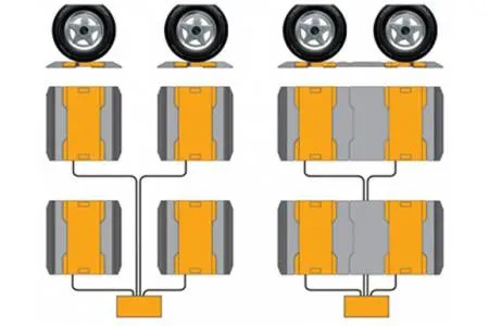 Активные грузоприемные платформы, в сочетании с пассивными позволяют достоверно определить массу автомобиля, при условии, если все колеса находятся на платформах. Нагрузку на ось определяют при выравнивании всех осей при использовании пассивных площадок.